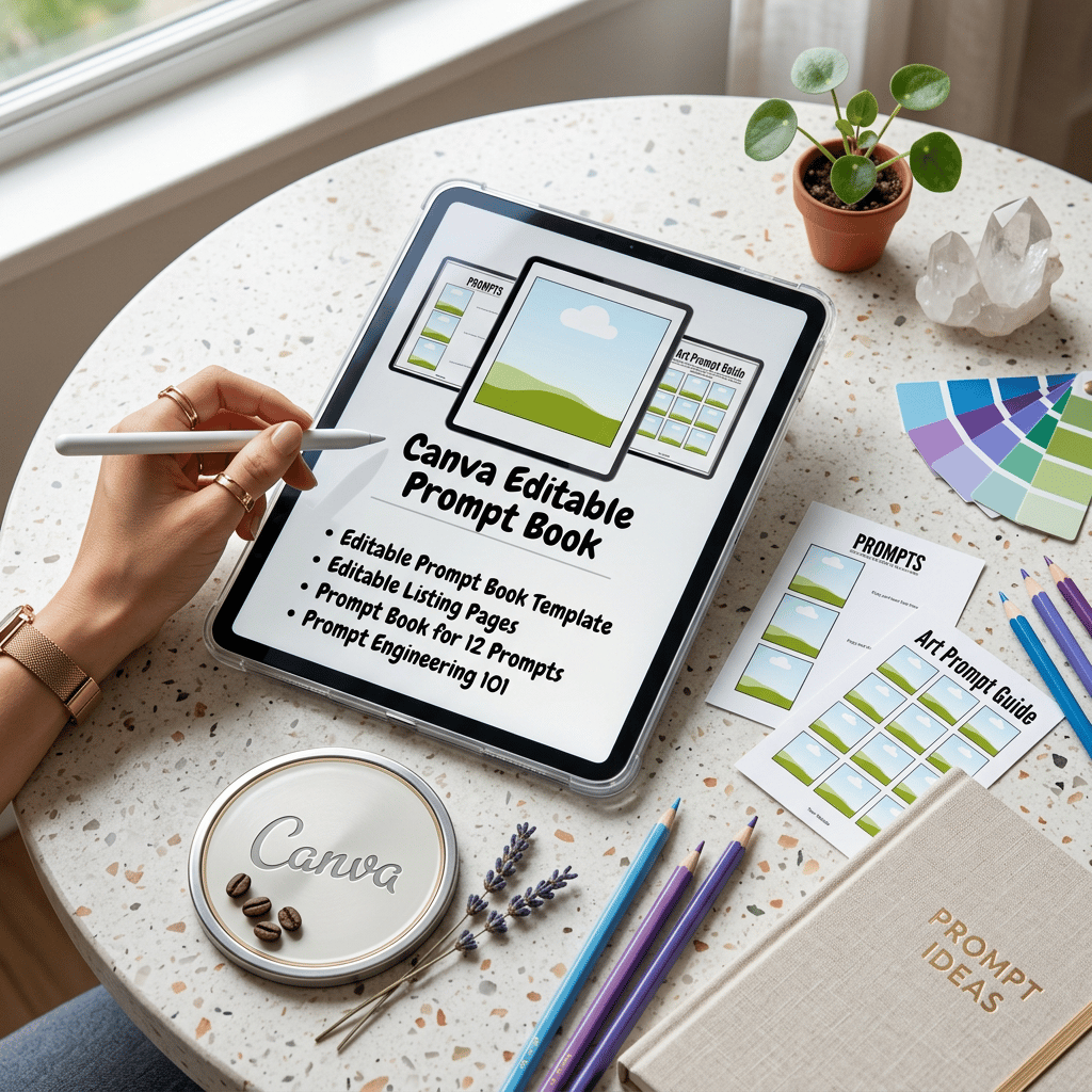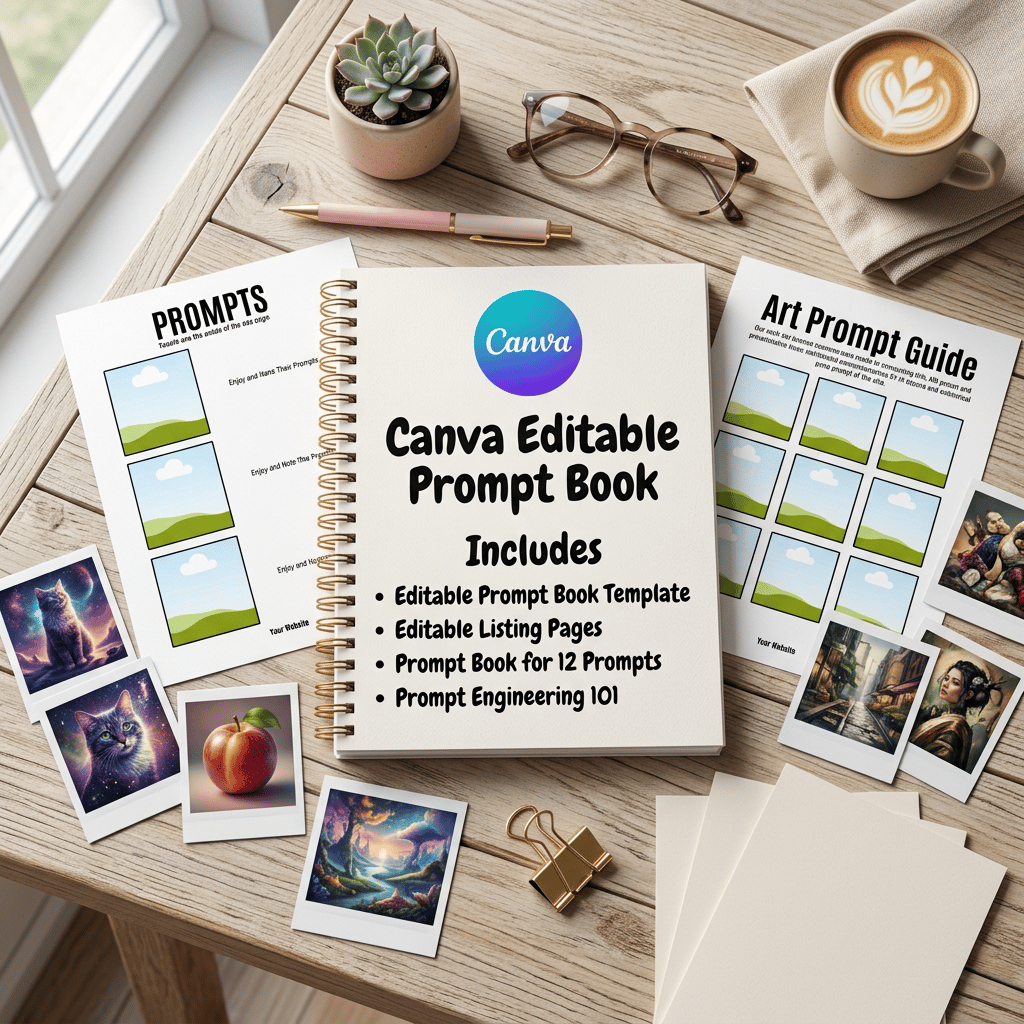 - Editable Prompt Book Template – Fully customizable in Canva, making it easy to create your own prompt book
